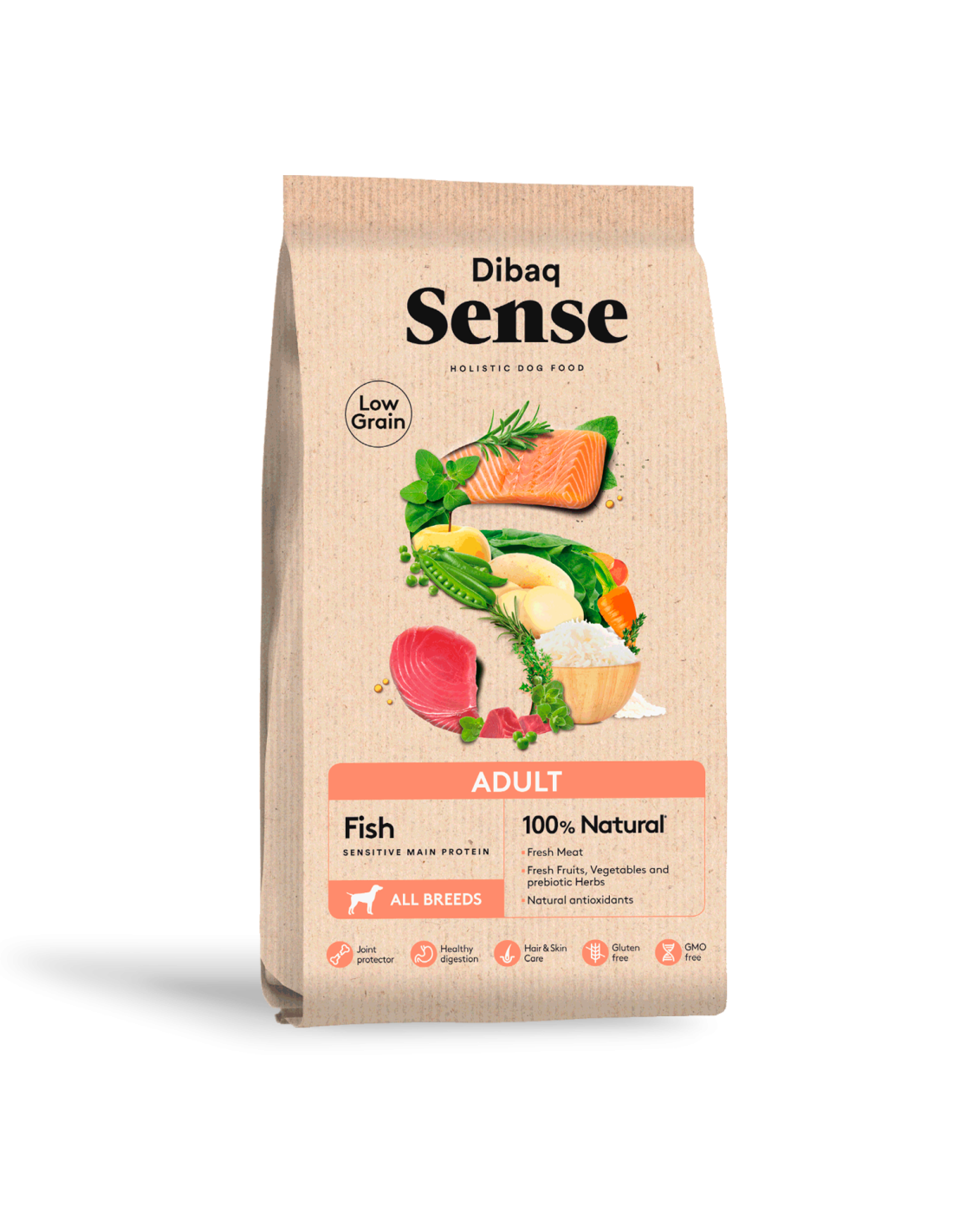Dibaq Sense Pescado oferece uma opção hipoalergênica e completa para cães adultos de todas as raças. Elaborada com carnes frescas de salmão, frutas e vegetais frescos como cenoura, batata, espinafre e maçã, além de arroz, esta receita não contém trigo, glúten, milho, soja e ovo. A nossa gama exclusiva Dibaq Sense destaca-se pela aposta em ingredientes 100% naturais e de primeira qualidade, incluindo diversas opções como salmão, arenque, frango, pato, peru, entre outros, a par de frutas e vegetais frescos como batata, batata doce, pimentões, mirtilos, maçãs e manga. Também incorporamos protetores articulares como condroitina e glucosamina, plantas prebióticas e antioxidantes naturais para promover a saúde e o bem-estar do seu animal de estimação. Dibaq Sense é uma solução comprovada para alergias e intolerâncias alimentares, com opções como Dibaq Sense Grain Free para animais de estimação intolerantes a grãos, bem como receitas de cordeiro monoproteico para animais de estimação sensíveis a outras carnes ou peixes.